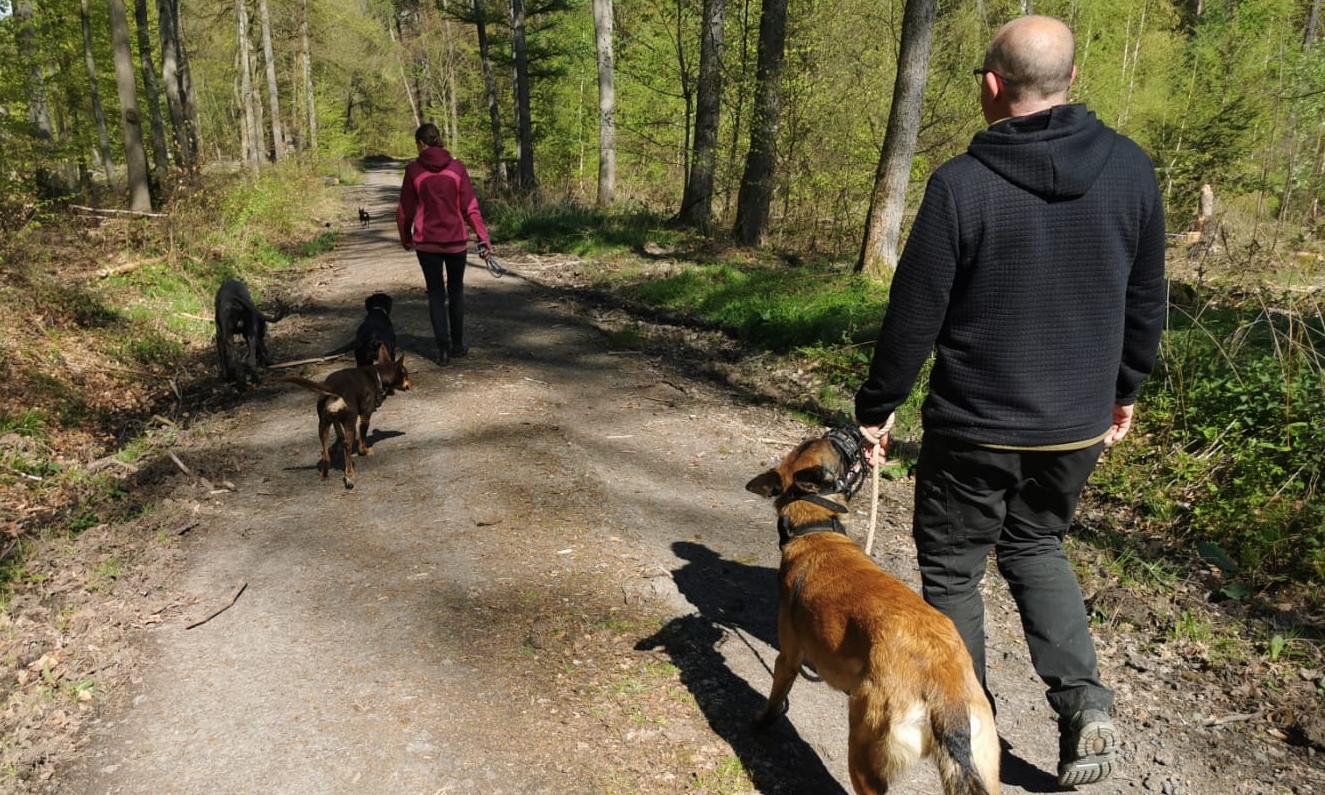 Beim Social Walk spaziert ihr unter Anleitung mit eurem Hund und fördert sein Verhalten. Der Spaziergang bietet Hunden in einer sicheren Umgebung die Möglichkeit, soziale Fähigkeiten zu entwickeln und auf andere Hunde zu treffen.
